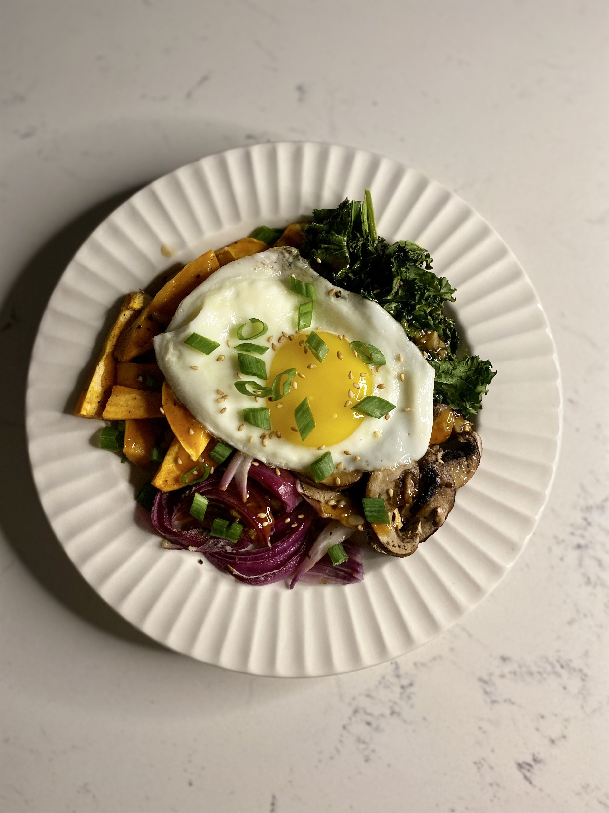 - Serve the vegetables over your favorite grain topped with as much of the magical Korean BBQ sauce as you can handle and a fried egg.